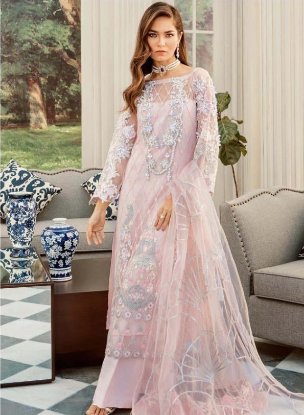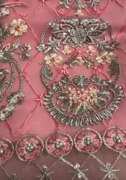 Pink Embroidered Net with Satin Lining