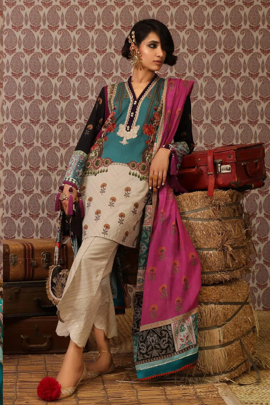 - Printed Dupatta on chiffon (blended): 2.5m
